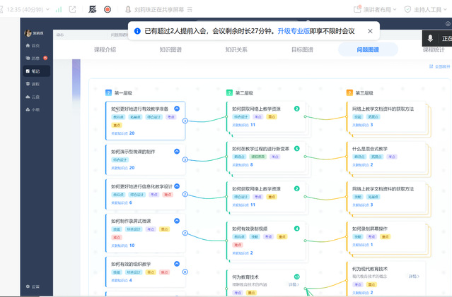 会议伊始,陈维维老师以“人工智能及教育应用”和“数字技术伦理”两门课程为例,系统介绍了知识图谱表格的填写规范与技巧。她从七级知识点的精细化分类切入,详细解析了如何科学划分重点、难点与考点,并结合认知维度理论(记忆、理解、应用等)和知识分类标准(事实性、概念性、程序性、元认知),精准定位教学目标。针对教学目标设计,陈维维老师强调需紧扣课程核心,将三个预设目标与知识点逐一对照填写,确保教学方向的一致性与可操作性。