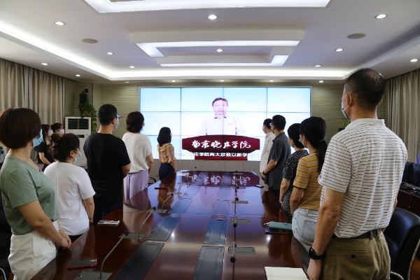 清晨,学校组织开展线上升旗和“开学第一课”,学院党政班子成员和行政人员在行知楼321会议室参加了此次活动,全院师生共同在线聆听“开学第一课”。