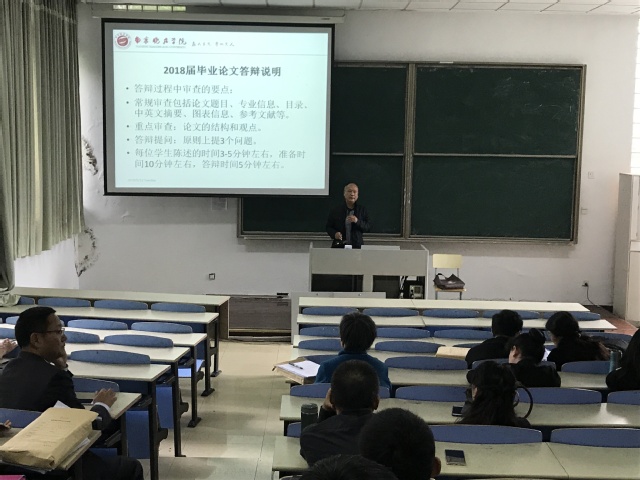 5月22日(周二)学院进行了2018届本科毕业论文答辩工作。学院2018届共有310名学生参加了第一次答辩。在论文答辩工作正式开始前,学院在行知100召开了论文答辩预备会,预备会由丁茗副院长主持。预备会上丁院长明确了本次论文答辩工作的流程,答辩过程中审查要点,论文答辩结果要求以及答辩各项工作的具体安排。